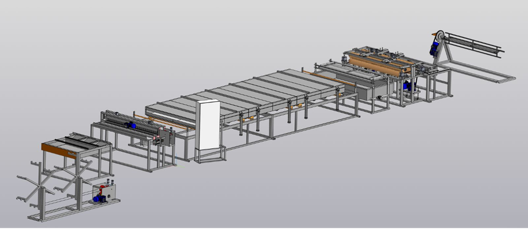 3. Накопитель поперечного прутка — между двумя стальными сетками формируется петля для быстрой подачи и компенсации рывков.